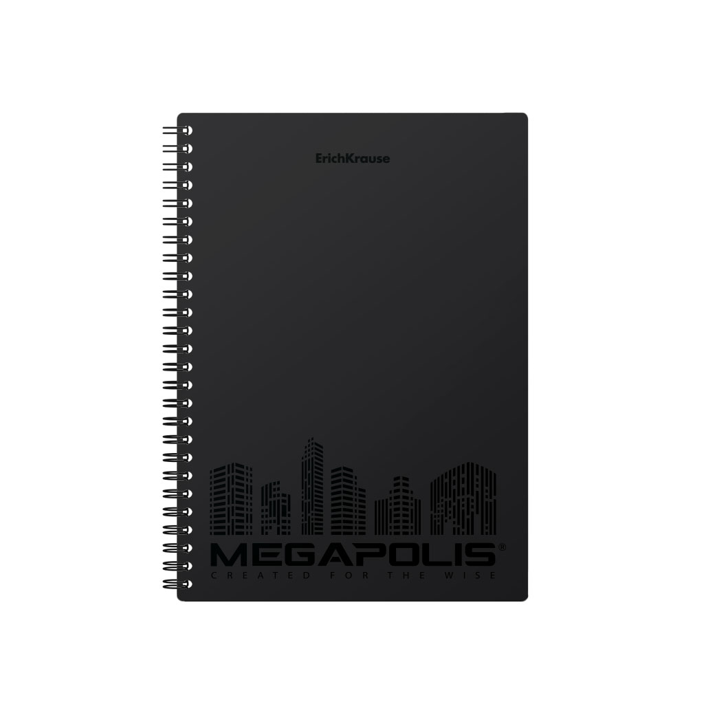 Тетрадь общая с пластиковой обложкой на спирали Erich Krause® MEGAPOLIS®, черный, А5, 80 листов, клетка, микроперфорация