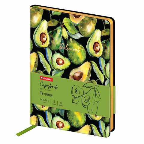 Тетрадь А5 (168х208 мм), 80 л., сшивка, клетка, под кожу, бумага 70 г/м2, BRAUBERG VISTA, "Avocado", 403919