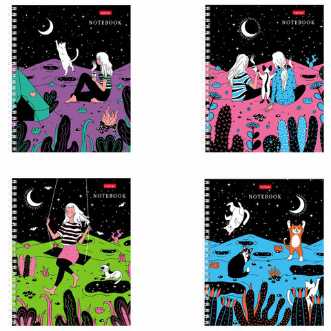 Тетрадь А5, 80 л., HATBER гребень, клетка, обложка картон, "Дотянуться до небес" (4 вида в спайке) 80Т5вмВ1гр