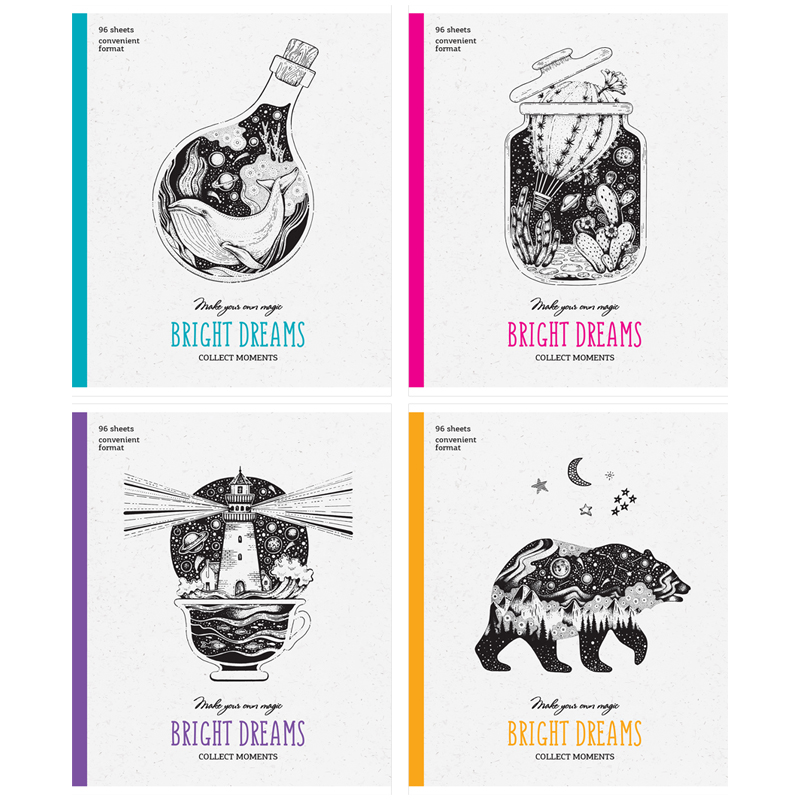 Тетрадь 96л., А5, клетка ArtSpace "Рисунки. Bright dreams", матовая ламинация, выборочный УФ-лак