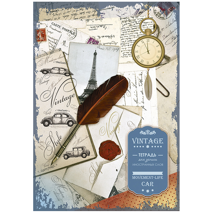 Тетрадь для записи иностранных слов, А5, 48 л., в линейку, "Винтаж"