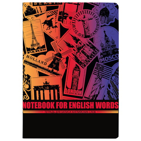 Тетрадь-словарь для записи английских слов, А5, 60 л., КОЖЗАМ, сшивка, клетка, "World", BRAUBERG, 404038