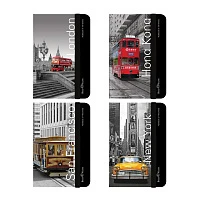 ЗАПИСНАЯ КНИЖКА "MEGAPOLIS JOURNAL" А6, 100Л. ГОРИЗОНТАЛЬНЫЙ НА РЕЗИНКЕ (ГОРОДА) 4 ВИДА, КЛЕТКА