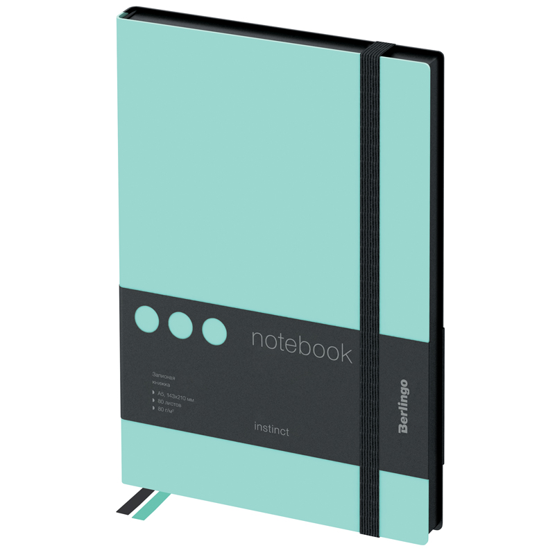 Записные книжки Berlingo Instinct изготовлены из матовой искусственной кожи c эффектом soft-touch. Сочетание двух контрастных цветов обложки: пастельного зеленого и черного. Полужесткая обложка с прострочкой по корешку. Черный срез блока. Вертикальная черная фиксирующая резинка увеличенной ширины 9мм. Запечатанные форзацы. Внутренний блок из 80 листов высококачественной кремовой бумаги повышенной плотности 80 г/м?, пантонная печать, перфорированные уголки. Индивидуальная упаковка. Подходят под персонализацию.