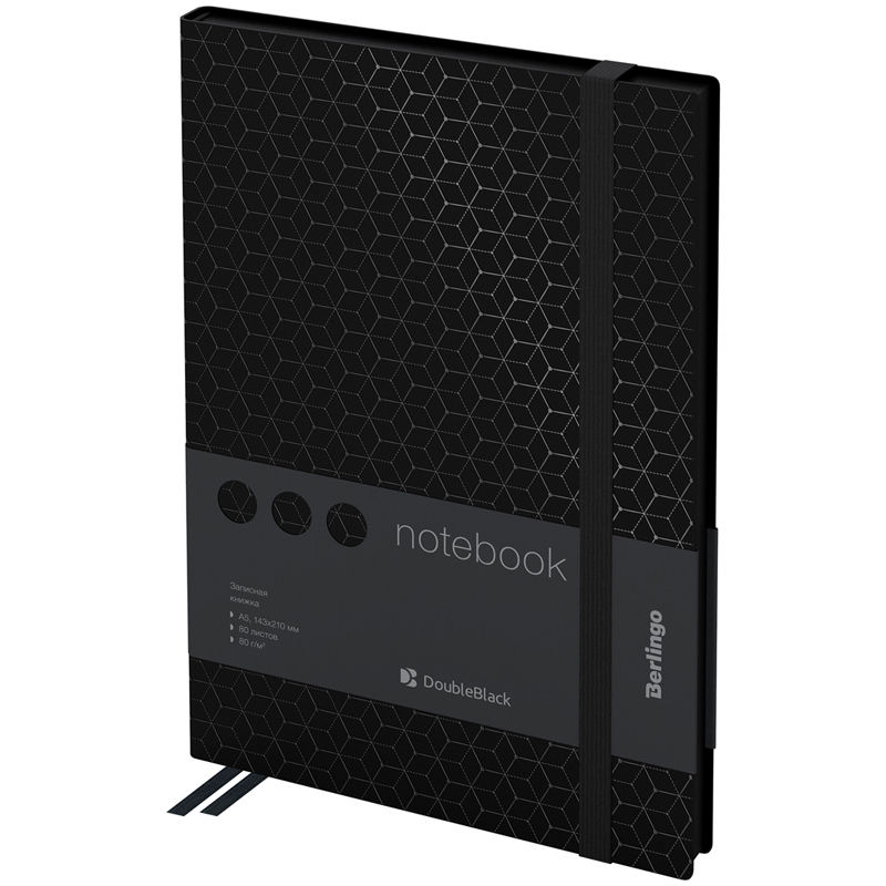 Записная книжка А5 80л., кожзам, Berlingo "DoubleBlack", черный срез, черная, с рисунком