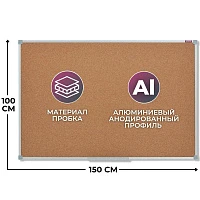 Доска пробковая для объявлений 100х150 см, алюминиевая рамка, ГАРАНТИЯ 10 ЛЕТ, РОССИЯ, BRAUBERG, 238181