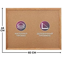 Доска пробковая 70х50 см, ПВХ рамка, ГАРАНТИЯ 10 ЛЕТ, РОССИЯ, BRAUBERG, 238188