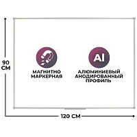 Доска магнитно-маркерная OfficeSpace, 90*120см, алюминиевая рамка Slim, полочка