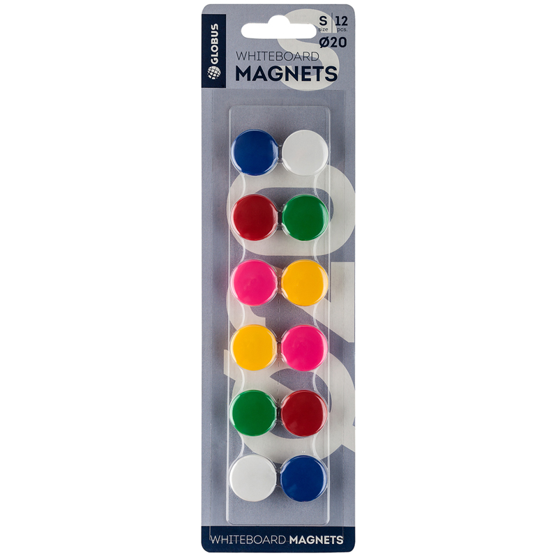 Магнит для досок Globus 20мм, 12шт., ассорти, блистер