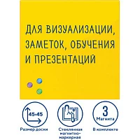 Доска магнитно-маркерная стеклянная 45х45 см, 3 магнита, ЖЕЛТАЯ, BRAUBERG, 236739