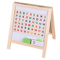 Доска для рисования двусторонняя 44*33,5см (доска на подставке, мелки, губка, магниты, маркер)