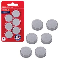 Магниты СУПЕРМОЩНЫЕ НЕОДИМОВЫЕ 20 мм (МАЛОГО ДИАМЕТРА), НАБОР 6 шт., серые, BRAUBERG "HEAVY DUTY", 237485