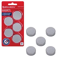 Магниты СУПЕРМОЩНЫЕ НЕОДИМОВЫЕ 30 мм, НАБОР 5 шт., серые, BRAUBERG "HEAVY DUTY", 237486