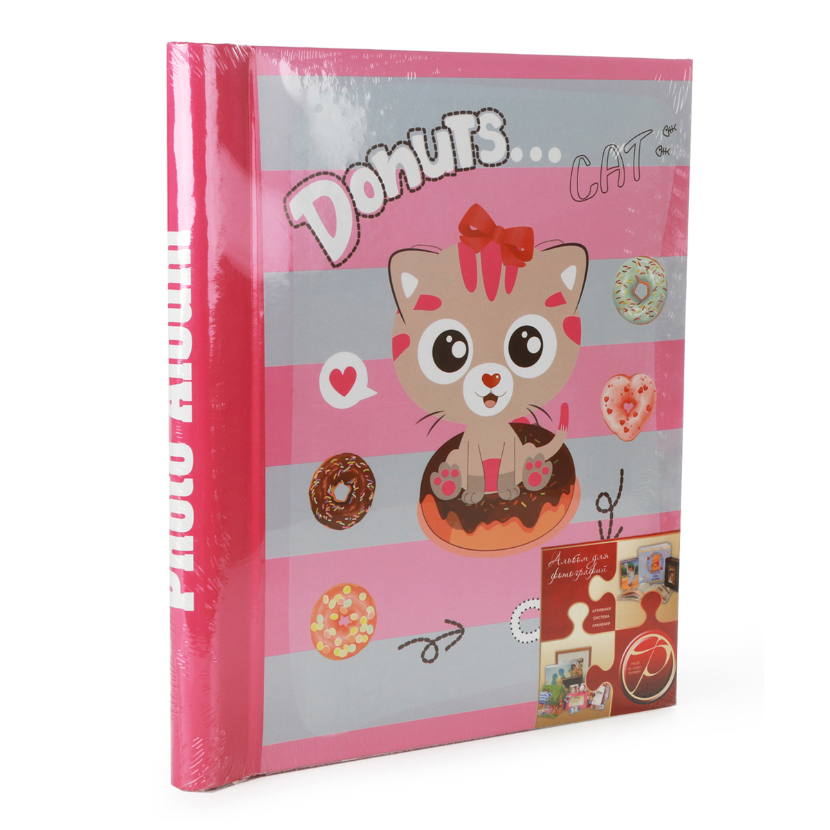 Яркий и забавный фотоальбом на спирали с милой кошечкой на обложке вмещает в себя 10 листов (20 клеевых страниц) размером 23*28 см. Снимок кладется на страницу альбома и накрывается пленкой. Благодаря свойствам пленки фотография надежно фиксируется на листе. Можно создавать разные коллажи и придумывать интересные оформления страниц! Этот фотоальбом долгие годы будет бережно хранить снимки и не потеряет свой внешний вид. Масса позитивных эмоций при пересмотре фотографий гарантирована! Фотоальбом изготовлен из картона и бумаги. Размеры фотоальбома: 24,5*3*29 см.