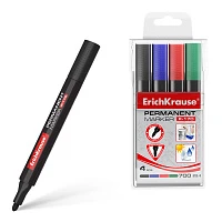Перманентный маркер ErichKrause® P-170, цвет чернил: черный, синий, красный, зеленый (в футляре по 4 шт.)
