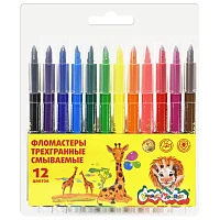 Фломастеры Каляка-Маляка ТРЕХГРАННЫЕ 12 цв., грифель 3мм,,ФТГКМ12
