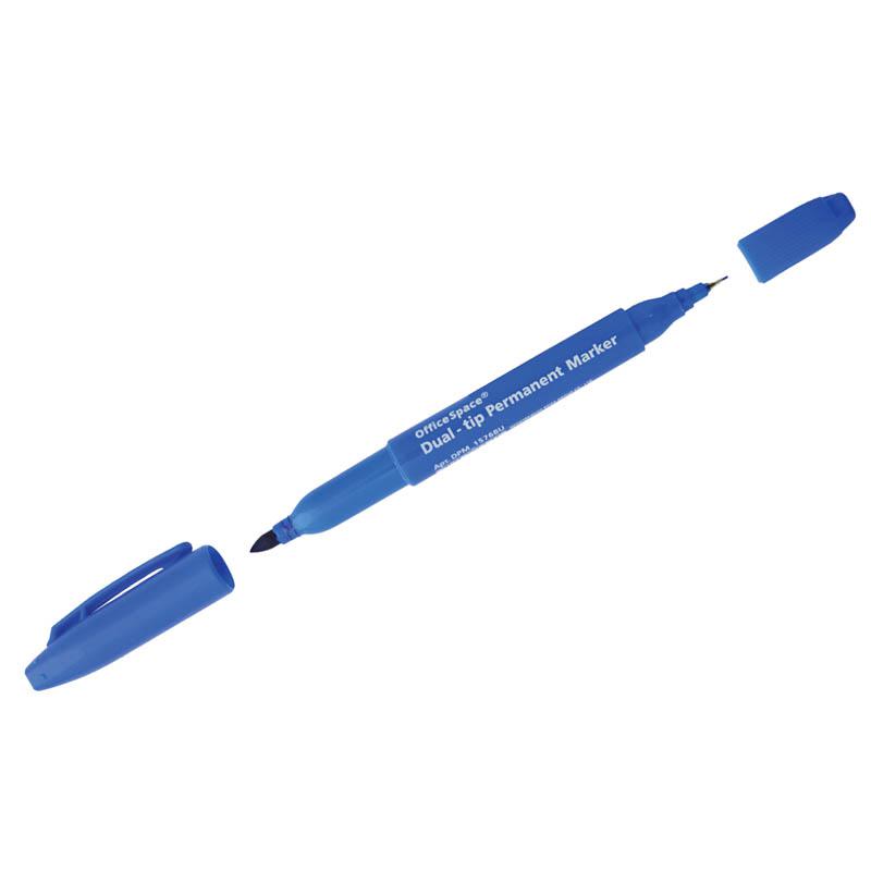 Маркер перманентный двухсторонний синий, пулевидный, 0,8-2,2мм: DPM_1576BU Предназначен для письма на большинстве поверхностей: бумаге, коже, пластмассе, металле, резине, ткани.