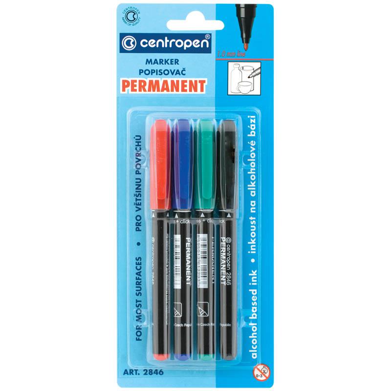 Набор перманентных маркеров "2846" 4цв., пулевидный, 1мм, блистер: 2846/4 BL Перманентный маркер, пишет на большинстве поверхностей, устойчивый к воде, стиранию, атмосферным воздействиям, на спиртовой основе. Цилиндрический пишущий узел. Волокнистое остриё 1 мм.