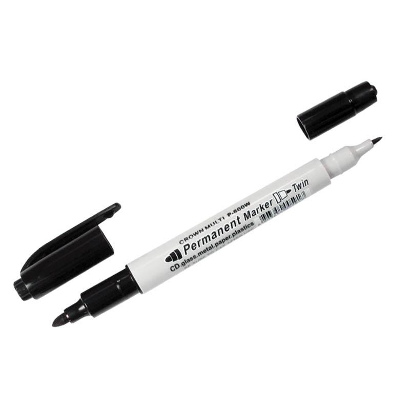 Маркер перманентный двухсторонний черный, пулевидный, 2мм/1мм: P-800W