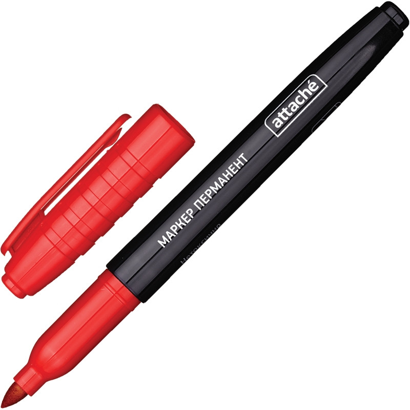 Перманентный маркер Attache в корпусе из прочного пластика. Нестираемые чернила пишут на любой поверхности. Круглый наконечник позволяет провести линию толщиной от 1,5 до 3 мм. Цвет - красный.