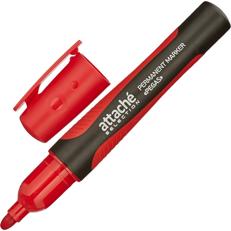 Перманентный маркер Attache Selection Pegas в пластиковом черном корпусе с прорезиненными элементами. Круглый наконечник позволяет провести линию толщиной 2-5 мм. Нестираемые чернила пишут на любой поверхности. Цвет - красный.