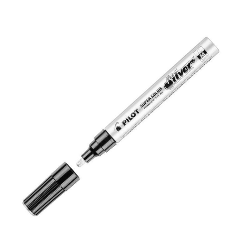 Маркер пеинт (лак) PILOT SC-S-M серебрянный 2-5мм. Маркер Pilot заправлен серебристыми чернилами; предназначен для использования на бумаге всех типов. Перед письмом необходимо взболтать и подождать, пока чернила наполнят округлый стержень. Инструкция по применению маркера: 1. Перед использованием хорошенько встряхнуть с закрытым колпачком. 2. Снимите колпачок, прижмите наконечник к поверхности, надавите и удерживайте пока не проступит краска. 3. Применять после того как убедитесь, что вытекает исходный цвет. Предостережения: плотно закрывайте колпачок после применения, держать маркер вдали от огня, прямые солнечные лучи вызывают обесцвечивание.