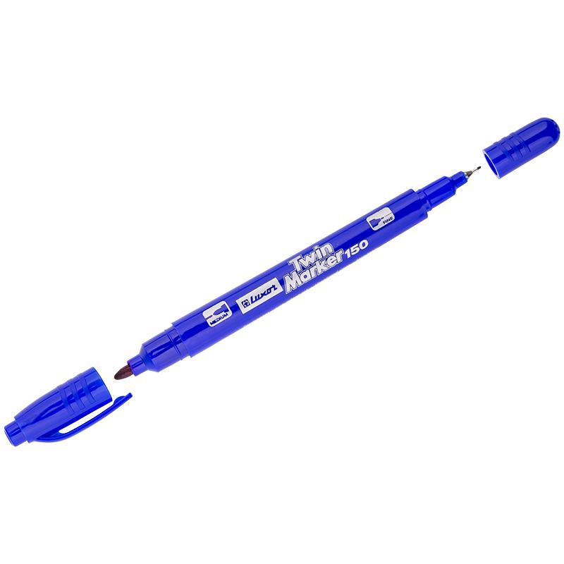 Маркер перманентный двухсторонний Luxor "150" синий, пулевидный, 0,7/1мм. 3012