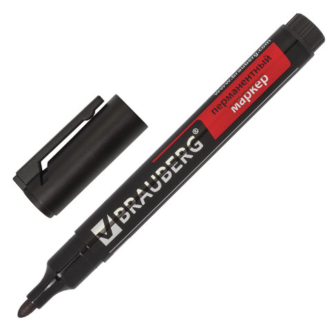 Маркер перманентный (нестираемый) BRAUBERG "Energy", ЧЕРНЫЙ, круглый наконечник, 3 мм, с клипом, 150475
