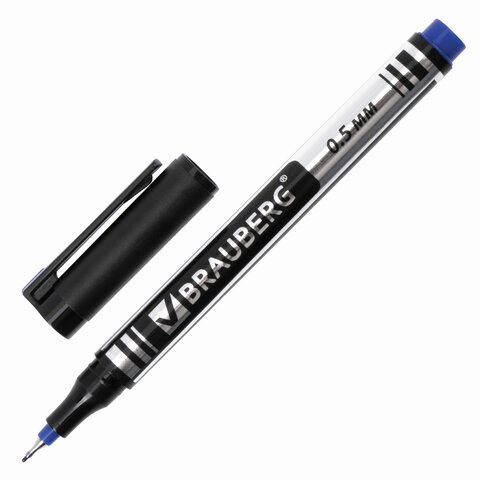 Маркер перманентный (нестираемый) BRAUBERG "Jet", СИНИЙ, супертонкий металлический наконечник, 0,5 мм, 150508