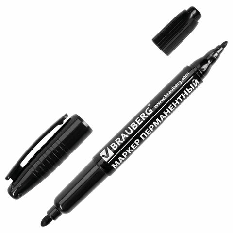 Маркер перманентный (нестираемый) BRAUBERG двусторонний, ЧЕРНЫЙ, круглый наконечник, 2-4 мм, 150836