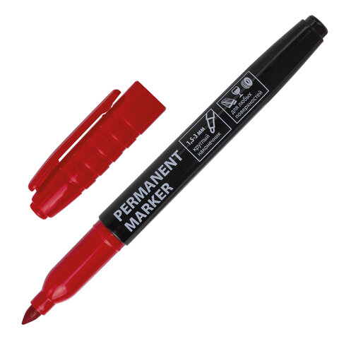 Маркер перманентный (нестираемый) BRAUBERG, КРАСНЫЙ, круглый наконечник, 1,5-3 мм, с клипом, 151631