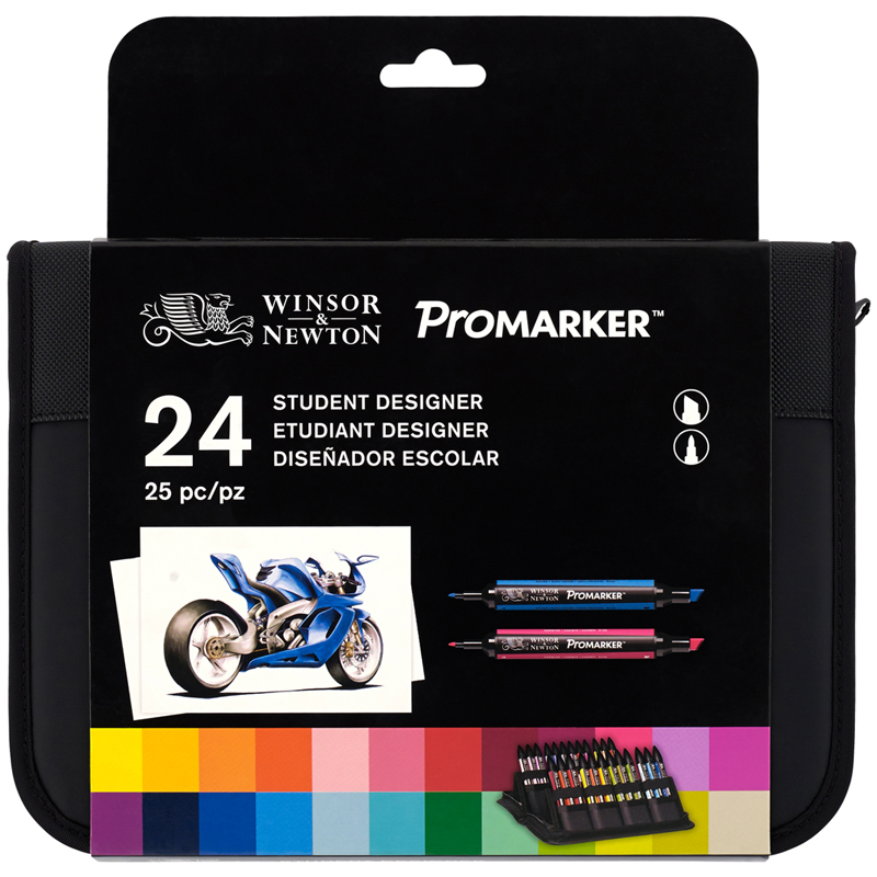 Маркеры WINSOR&NEWTON PROMARKER на спиртовой основе предназначены как для любителей, так и для профессионалов. Маркеры обладают двумя наконечниками. Тонкий наконечник подходит для прорисовки деталей, а широкий наконечник для закрашивания. Качественные наконечники и чернила позволяют создавать безупречный однотонный цвет без видимых штрихов. Объема одного маркера хватает на сплошное закрашивание 2,7 листов формата А3. С помощью PROMARKER вы можете переходить от ярких сочных цветов до нежных пастельных тонов, а полупрозрачные чернила хорошо подходят для смешивания и наложения одного слоя на другой, таким образом, расширяя уже имеющееся количество цветов и оттенков. Серия PROMARKER включает 148 цветов. Такое количество цветов позволяет применять PROMARKER в различных сферах от создания иллюстраций до комиксов и всевозможных творческих проектов. Одним из преимуществ PROMARKER является возможность смешивать различные цвета для создания новых, а в зависимости от влажности чернил можно достигать ровных переходов. Специальный блендер может быть куплен отдельно. Он используется для смягчения переходов и смешивания цветов. Маркеры сертифицированы, нетоксичны, соответствуют стандарту ASTM D-423.