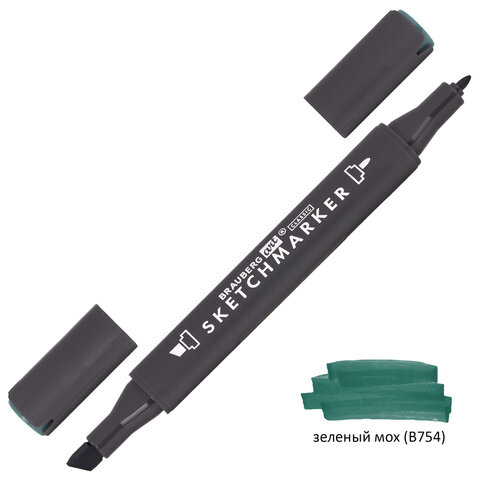 Маркер для скетчинга двусторонний 1 мм - 6 мм BRAUBERG ART CLASSIC, ЗЕЛЕНЫЙ МОХ (B754), 151837