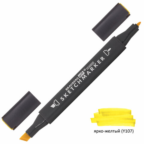 Маркер для скетчинга двусторонний 1 мм - 6 мм BRAUBERG ART CLASSIC, ЯРКО-ЖЕЛТЫЙ (Y107), 151774
