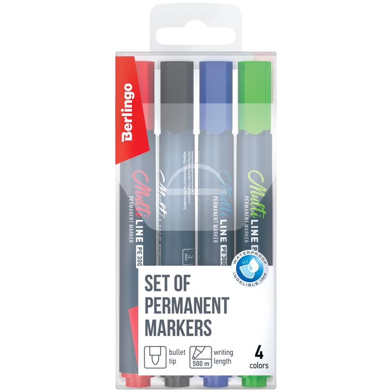Набор перманентных маркеров Berlingo "MultiLine PE300" 4цв., пулевидный, 3мм