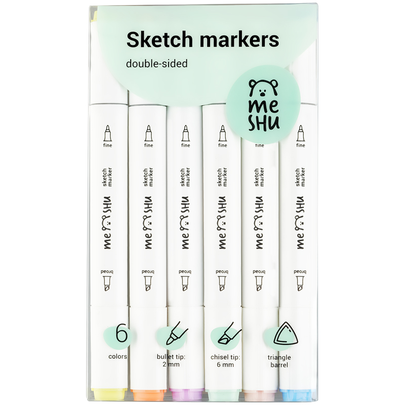 Набор маркеров для скетчинга MESHU, 6цв., пастельные цвета