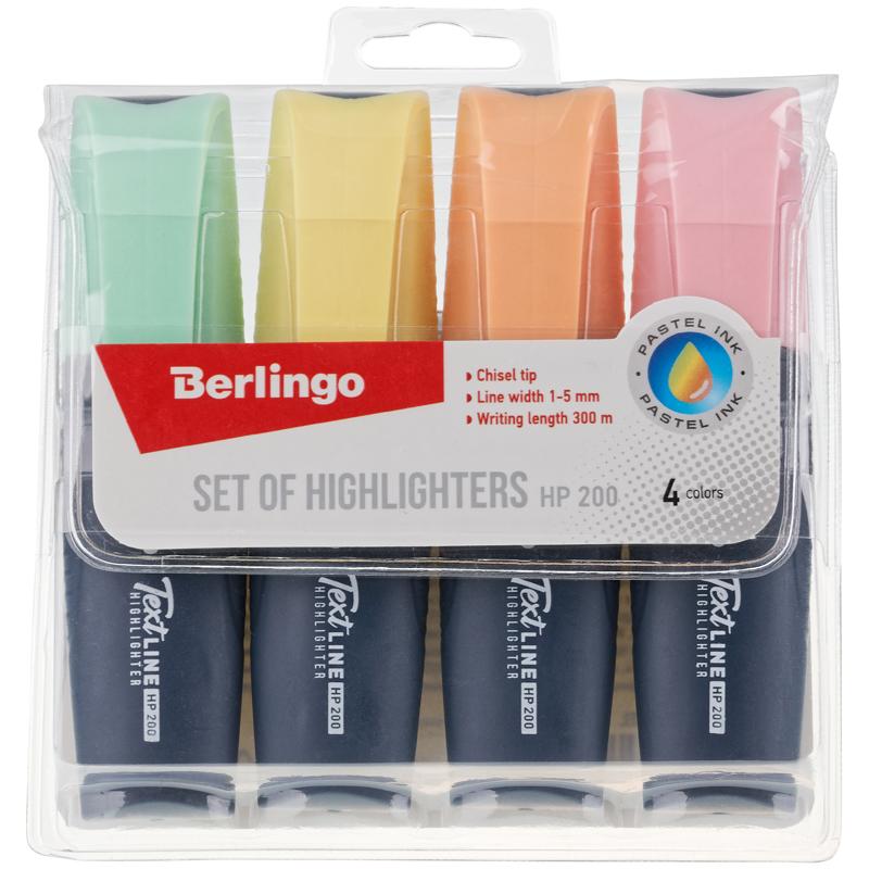 Набор текстовыделителей Berlingo "HP200", 4цв., пастельные цвета, 1-5мм, европодвес