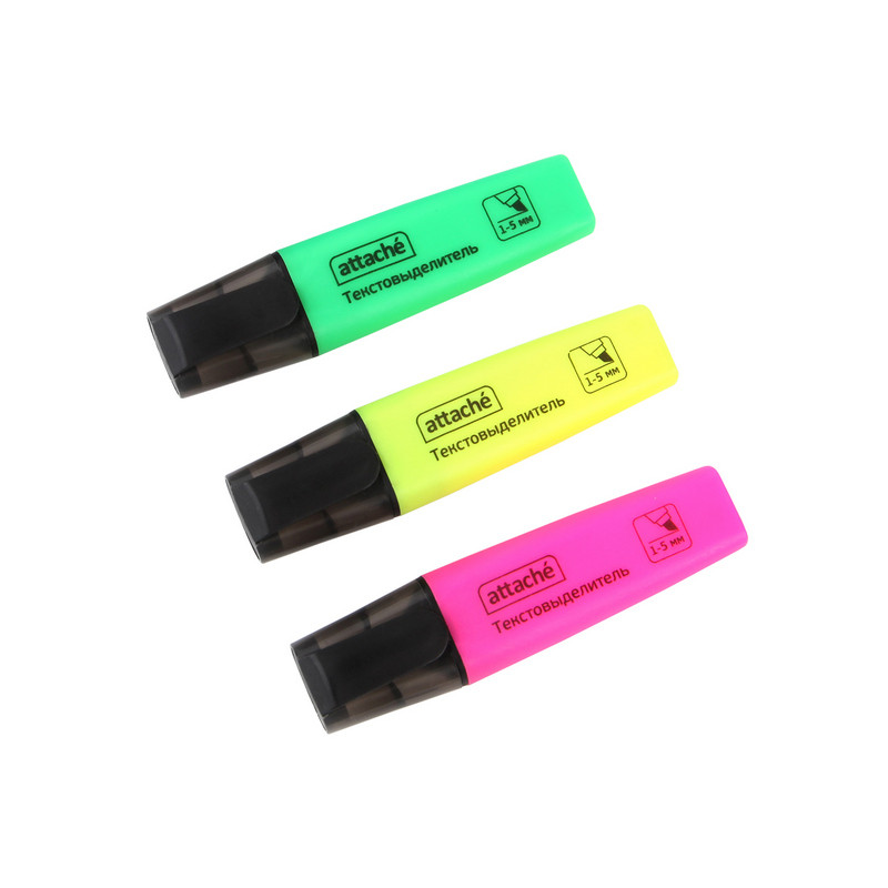 Маркер выделитель текста Attache Colored 1-5мм набор 3цв