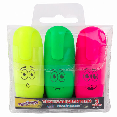 Набор текстовыделителей ЮНЛАНДИЯ 3 штуки, мини, АССОРТИ, "НЕОНЧИКИ", линия 1-5 мм, 151764