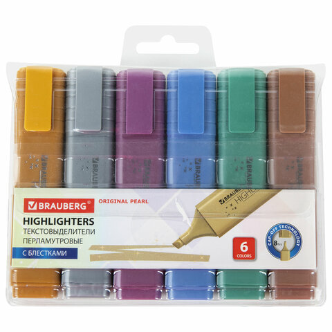 Набор текстовыделителей перламутровых 6 ЦВЕТОВ, BRAUBERG ORIGINAL PEARL, линия 1-5 мм, 152430