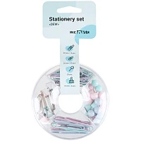 Набор мелкоофисных принадлежностей Meshu "Dew", 89 предметов, пастельные цвета, пластиковый пенал, европодвес