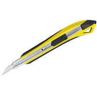 Нож канцелярский 9мм Berlingo "Razzor 300", auto-lock, металл.направл., мягкие вставки, желтый, европодвес