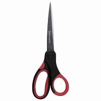 Ножницы BRAUBERG "Office", 210 мм, прорезиненные ручки, красно-черные, 2-х сторонняя заточка, блистер, 231566