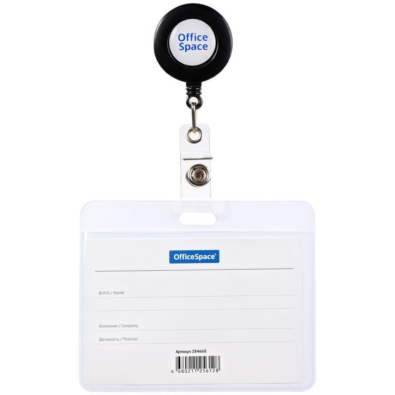 Бейдж горизонтальный OfficeSpace, 100*80мм (размер вставки 90*60мм), держатель-рулетка, черный