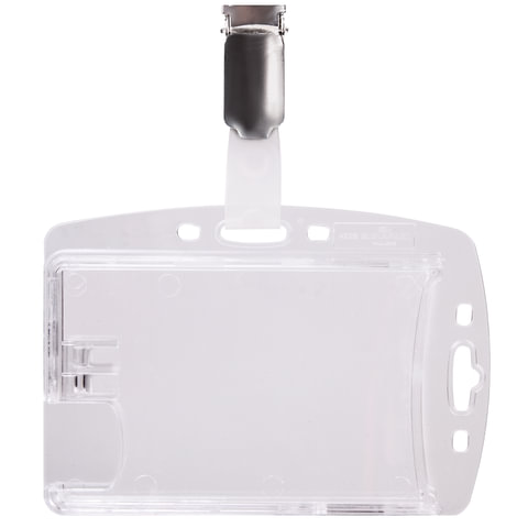 Двойной держатель для пластиковых пропусков с выемкой для пальца, позволяющей быстро вытащить пропуск. Поворотный клип для крепления может крепиться к держателю как с длинной, так и с короткой стороны.