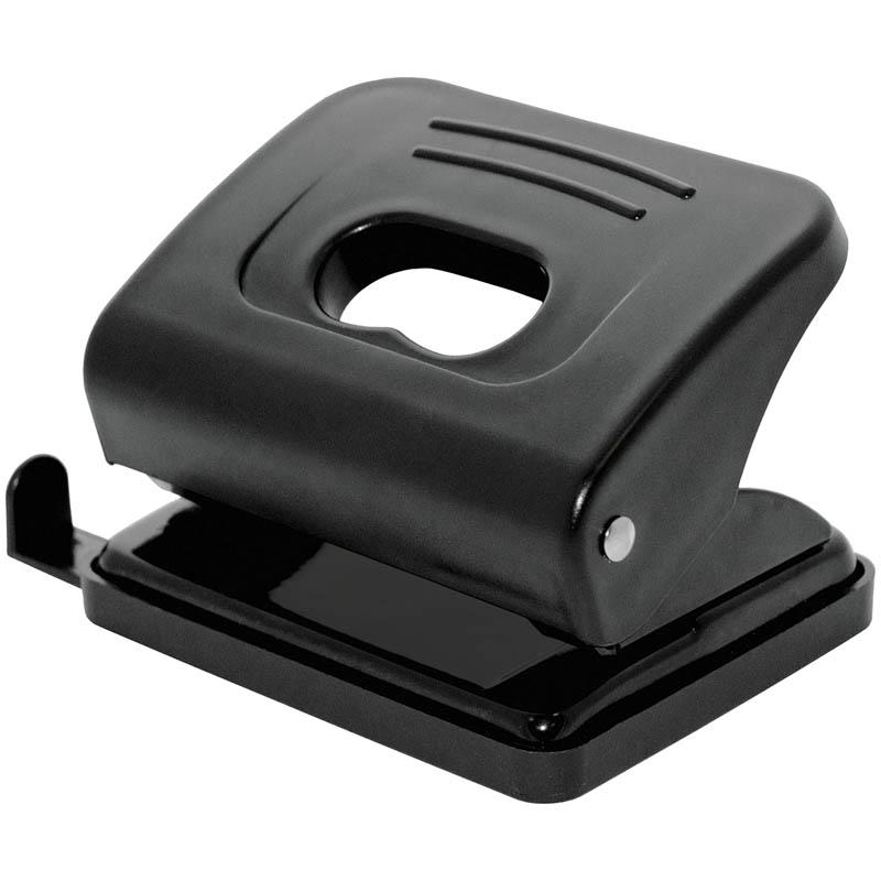 Дырокол 20 л, пластиковый, черный, с линейкой: P_7116/222110