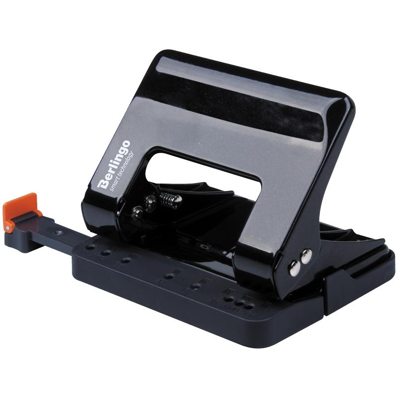 Дырокол Berlingo "Smart Technology" 15л., металлический, с фиксатором, черный, с линейкой. DDm_15101