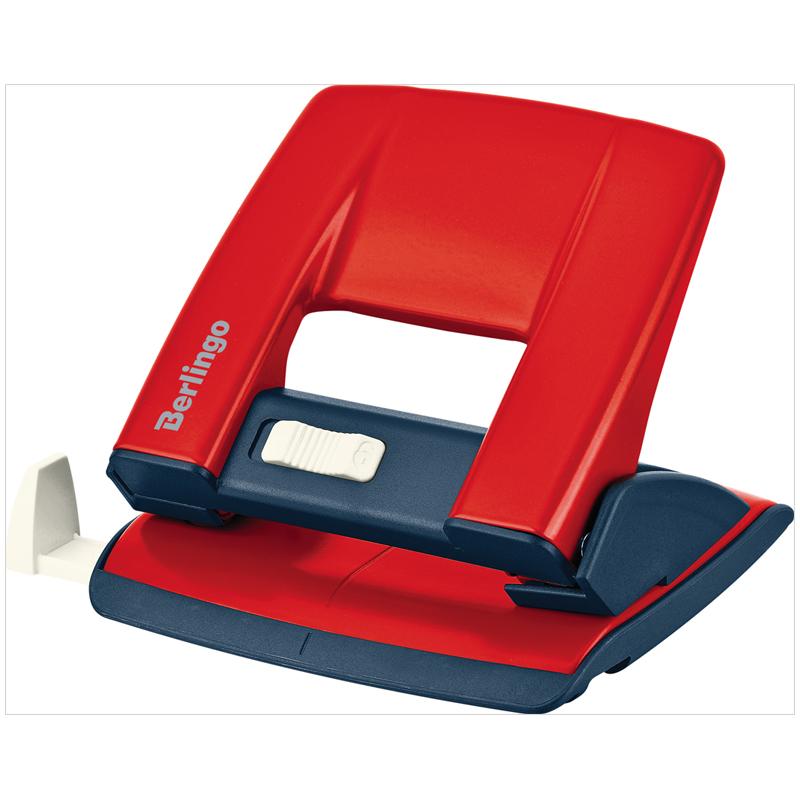 Дырокол Berlingo "Power TX" 20л., металлический, с фиксатором и линейкой, красный