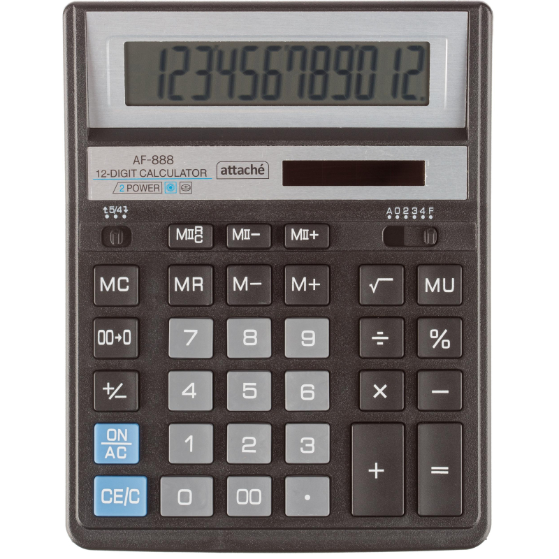 Калькулятор настольный ПОЛНОРАЗМЕРНЫЙ AttacheAF-888, 12р, дв.пит 204x158мм, ч/с