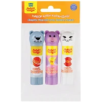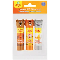Набор клей-карандаш Мульти-Пульти "Зверята: Кот, Мишка, Панда", 09г, колпачок в форме животного, ПВП, пакет, европодвес